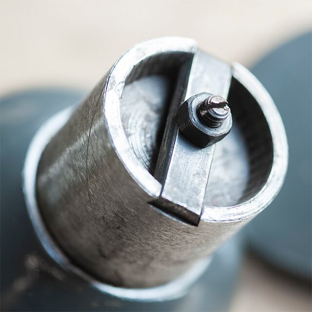 ダークグレイの燻し銀・小型ポータブル・ミル。